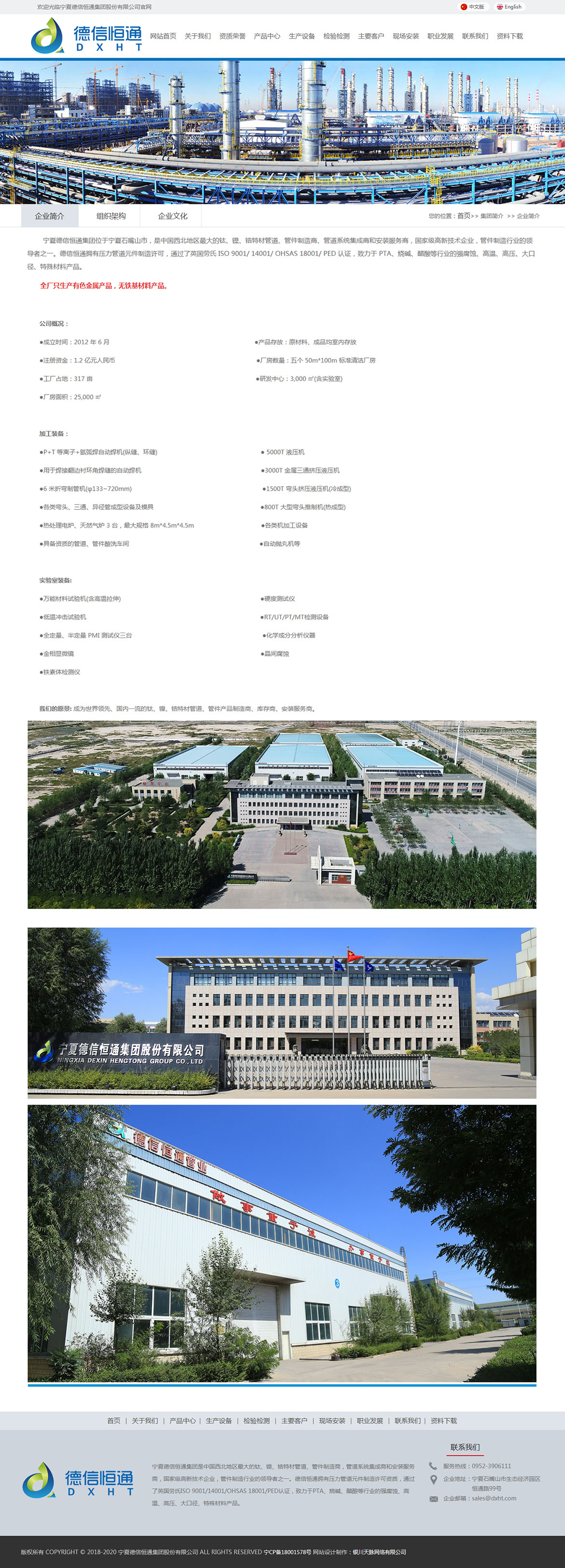 寧夏德信恒通集團(tuán)位于寧夏石嘴山市,是中國西北地區(qū)鈦、鎳、鋯特材管道、管件制造商、管道系統(tǒng)集成商和安裝服務(wù)商